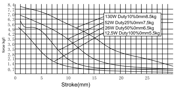 縱向:代表電磁鐵在對應行程時的力量 單位為克(g)